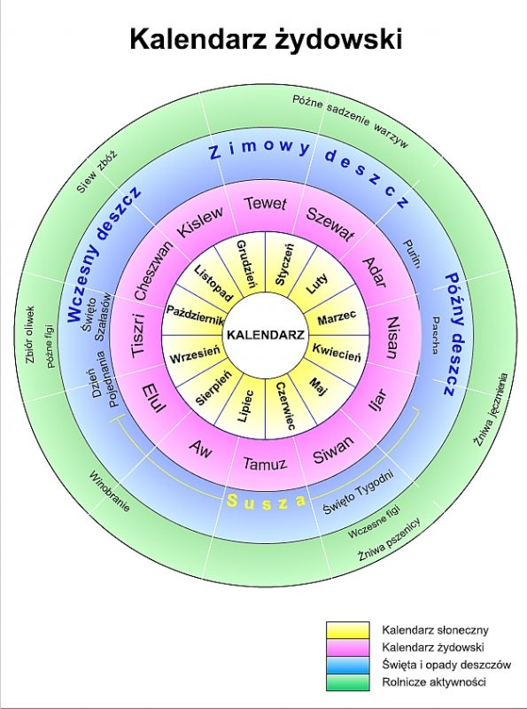 Żydowski kalendarz religijny rozpoczyna się od żydowskiego Nowego Roku czyli Rosz Haszany, który jest również nazywany Dniem Sądu - w niebie otwierane są księgi i każde stworzenie jest oceniane. Tego dnia dmie się w róg barani szofar, który symbolizuje trąbę, która zabrzmi na końcu czasów w Dniu Sądu. Okres pokuty kończy Jom Kipur, czyli Dzień Pojednania.